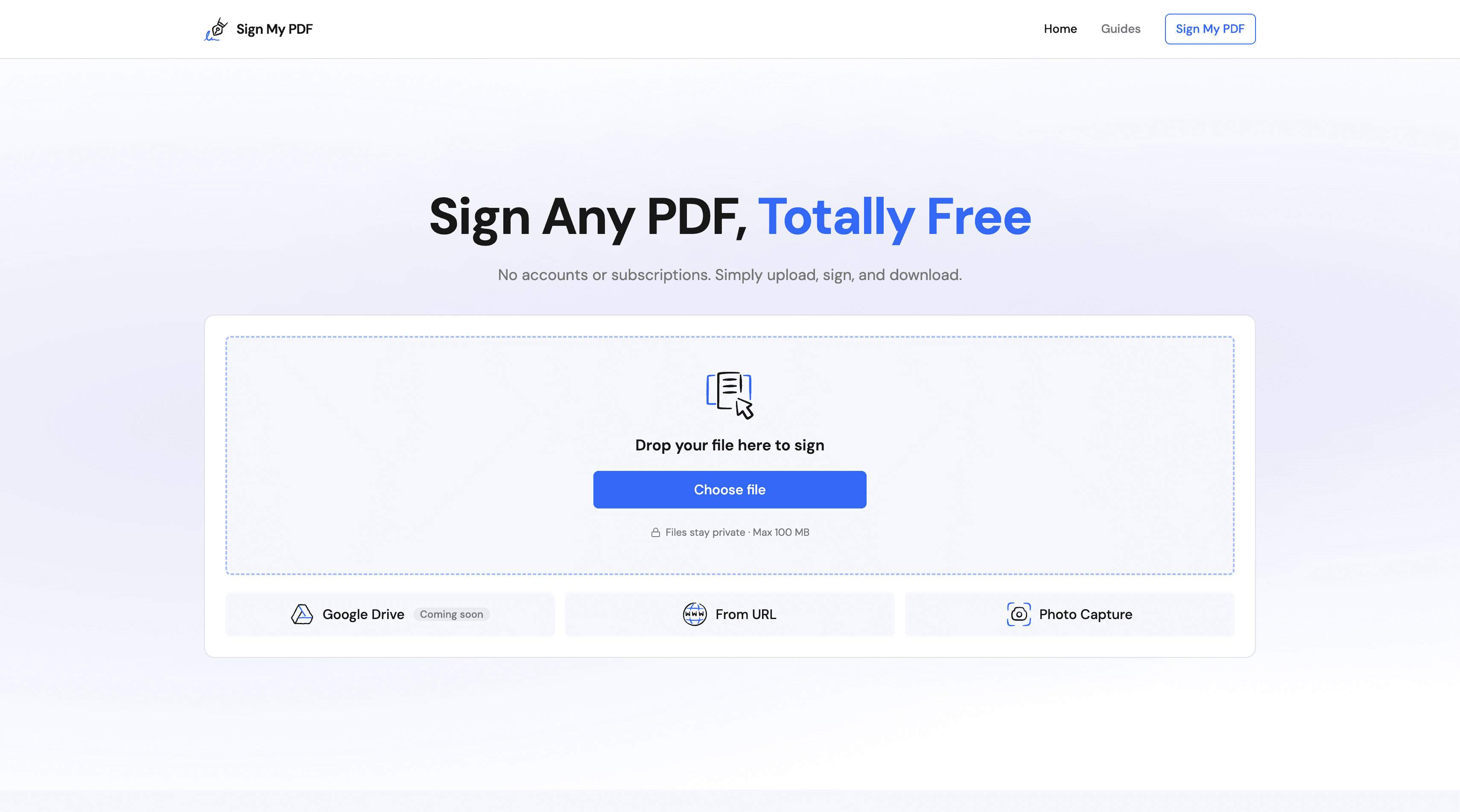 We built Sign My PDF as an internal tool first: a clean, fast, browser-based experience that lets users upload, sign, and download documents instantly, with no logins, no plugins, no overhead. The product prioritizes speed, usability, and transparency, reducing PDF signing to its essential steps while maintaining a professional, reliable experience.