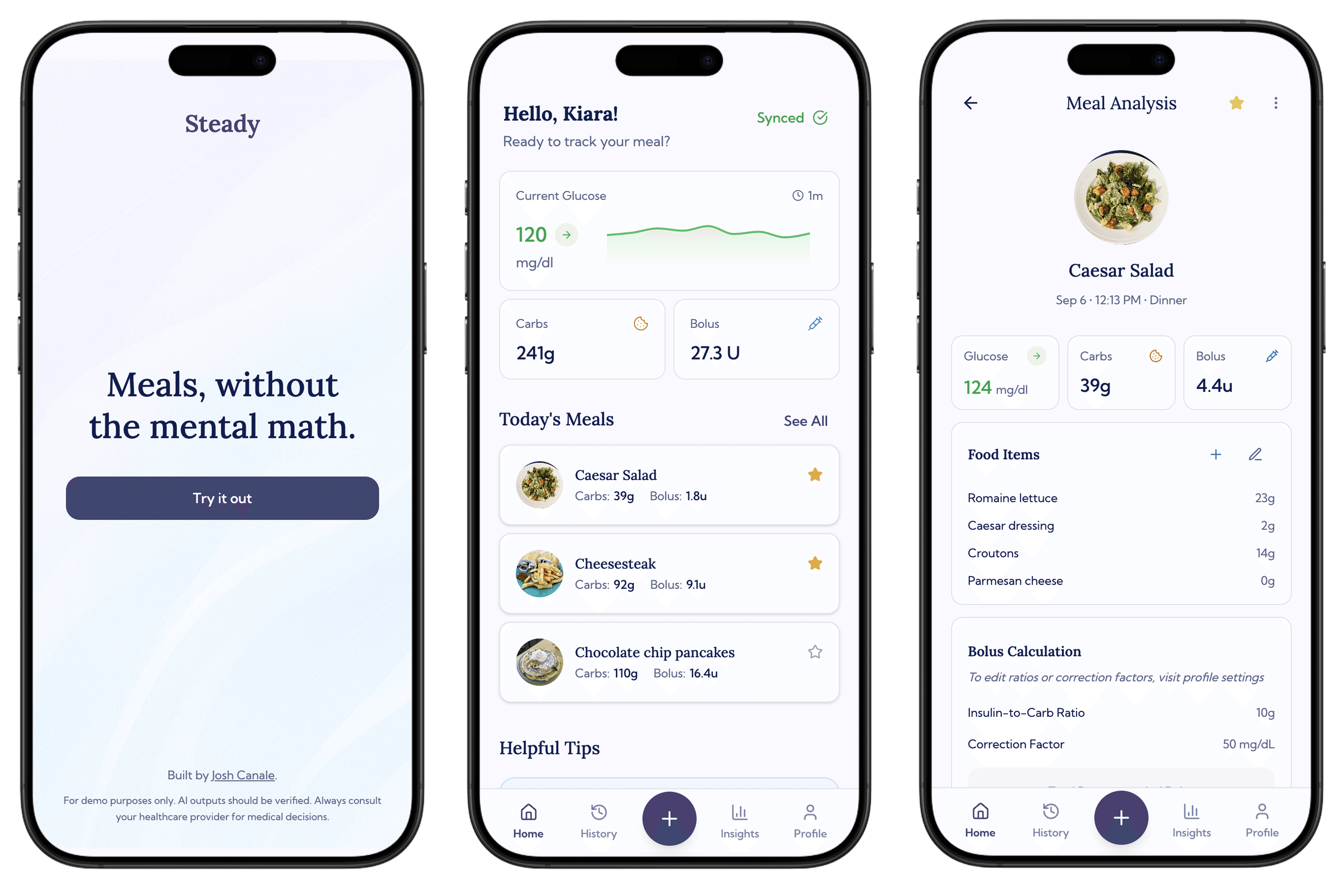 Steady is a concept for an AI powered carb and insulin tracking app that helps people with diabetes understand how specific foods affect their glucose.